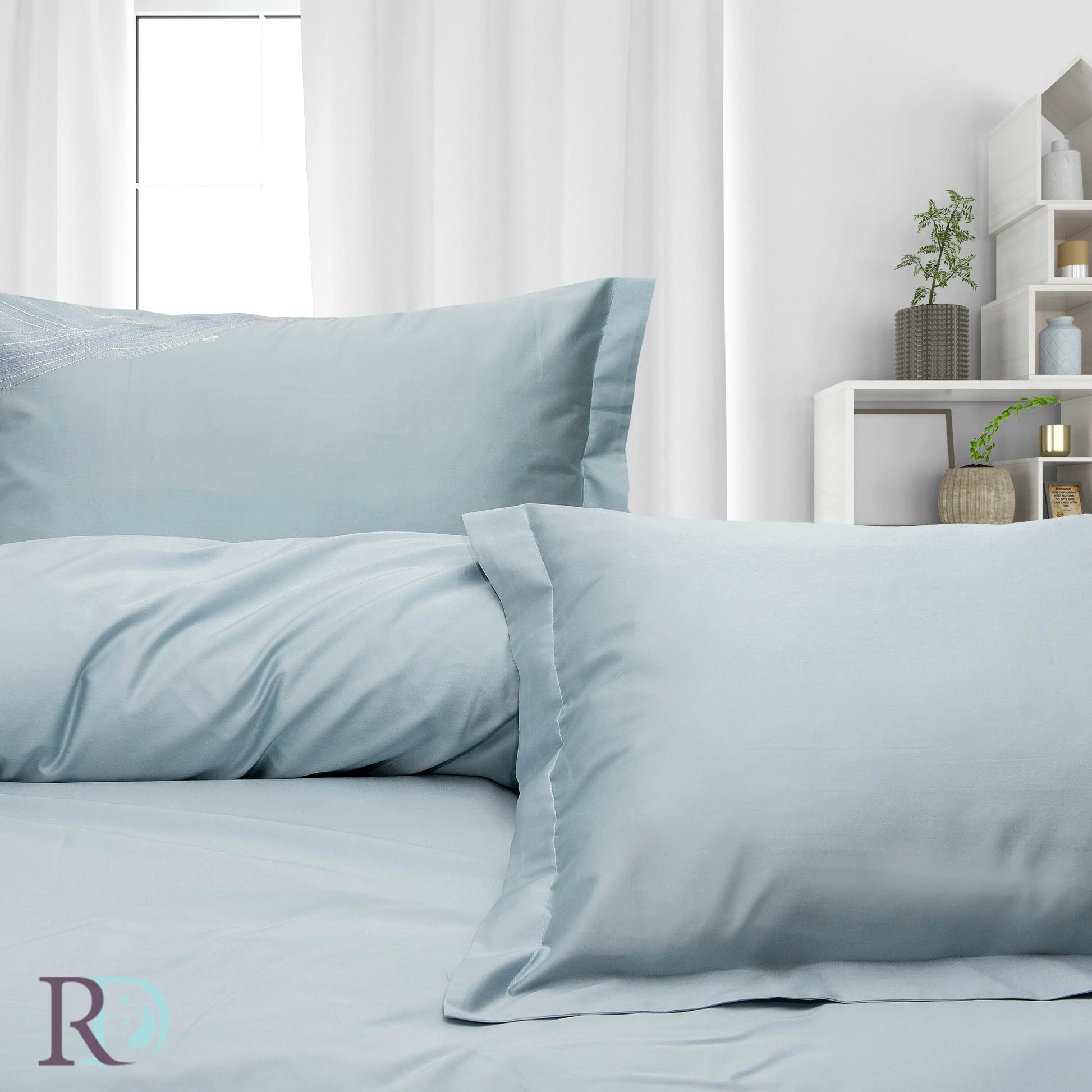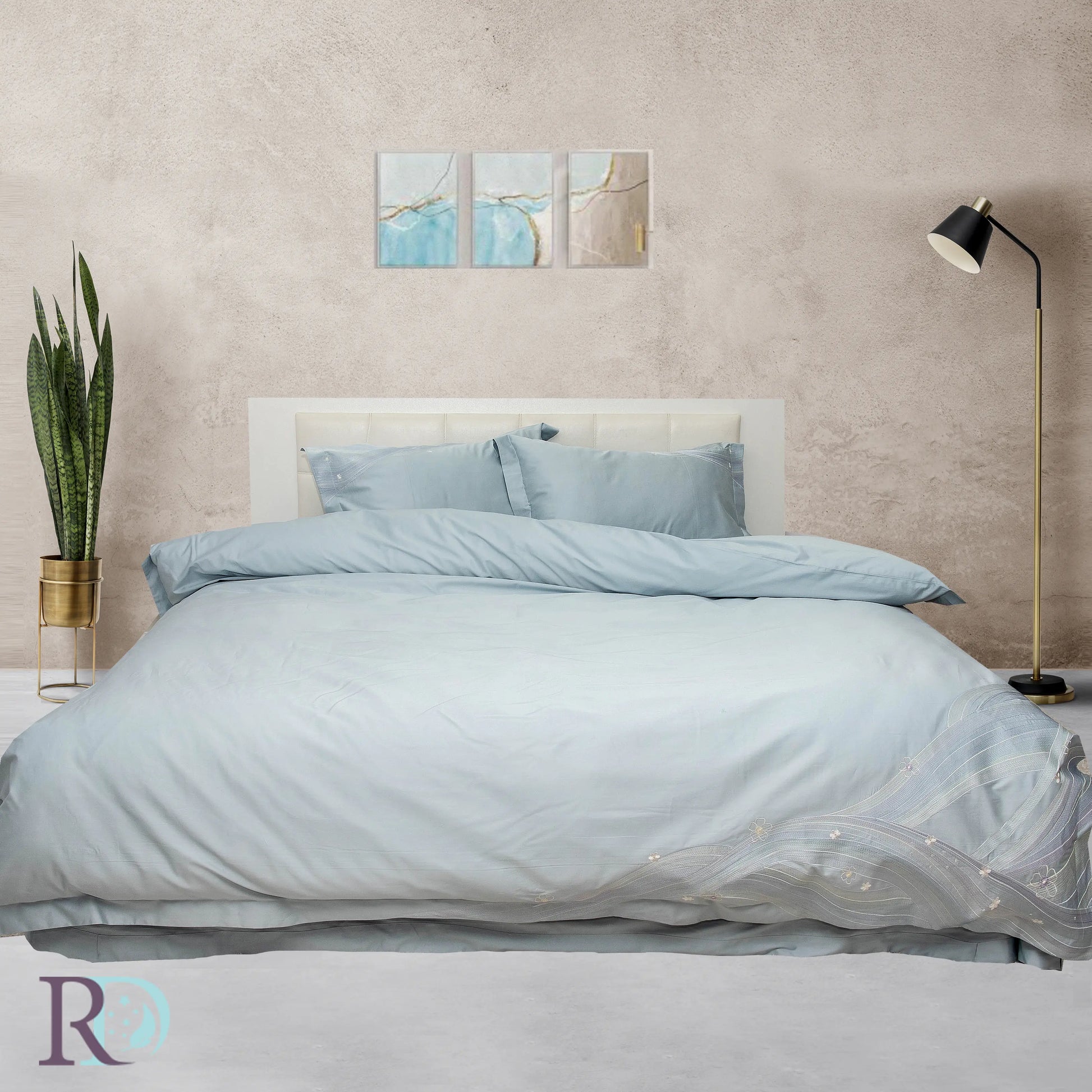 Спален комплект „Дъга синьо“ е изработен от висококачествен памучен сатен (100% памук) в снежно бял цвят, с фина бродерия за луксозен акцент. Пликът и калъфките са с периферия от трите страни за завършен вид. Предлага се в стилна подаръчна кутия – подходящ избор за подарък.