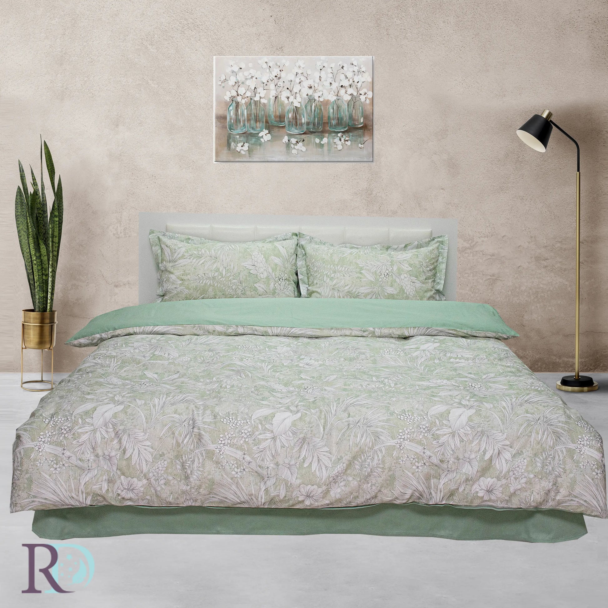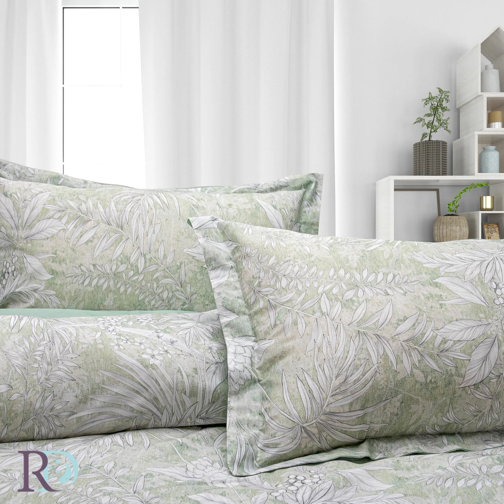 Спален комплект „Пролет зелено“ впечатлява със свежа цветова палитра и фини принтове, които освежават атмосферата в спалнята. Десенът е ефектен и придава характер на интериора. Калъфките са с декоративна периферия от три страни за по-завършен вид, а пликът се затваря с отвор в долната част.