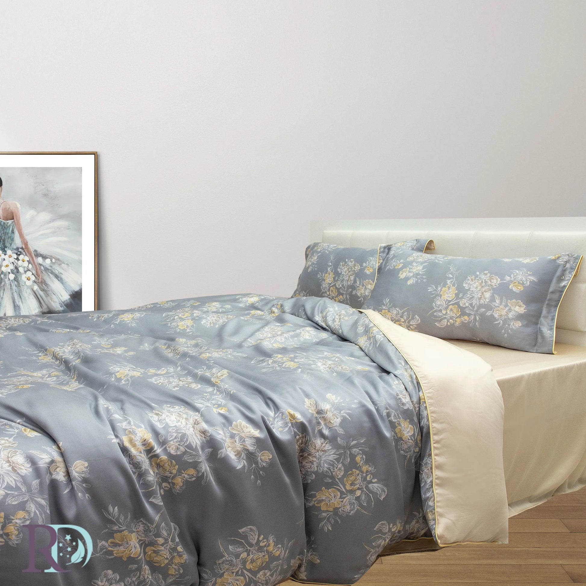Спален комплект „Снежи“ е изработен от 100% Тенсел – натурална, хипоалергична и антибактериална материя от дървесна целулоза. Подходящ е за хора с чувствителна кожа. Материята е дишаща и абсорбира влагата, осигурявайки комфортен сън. Комплектът е с флорални мотиви. Пликът и калъфките са с паспел и се закопчават с цип.