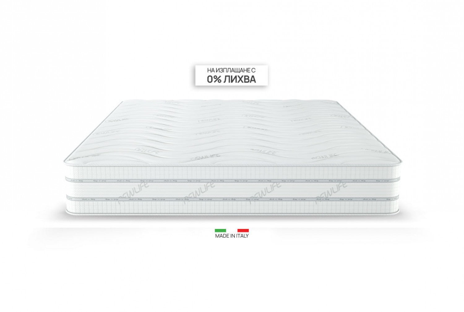 Този матрак е оборудван с пружини Pocket Spring, които равномерно разпределят тежестта на тялото и осигуряват удобна опора, предотвратявайки потъване. Комфортът е пълен с двата вида пяна: